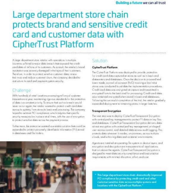 Large Department Store Chain Protects Brand and Sensitive Credit Card and Customer Data With CipherTrust Platform